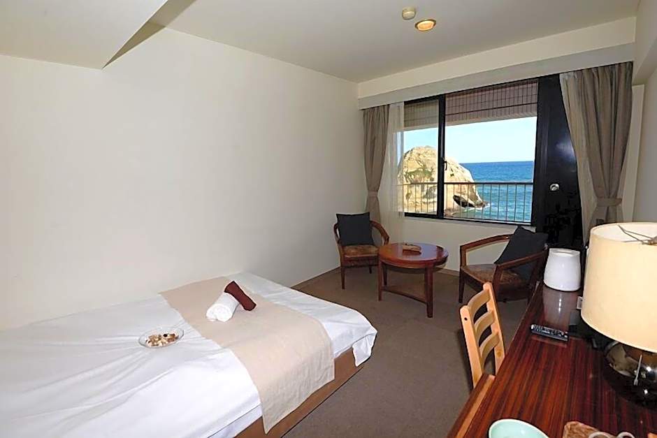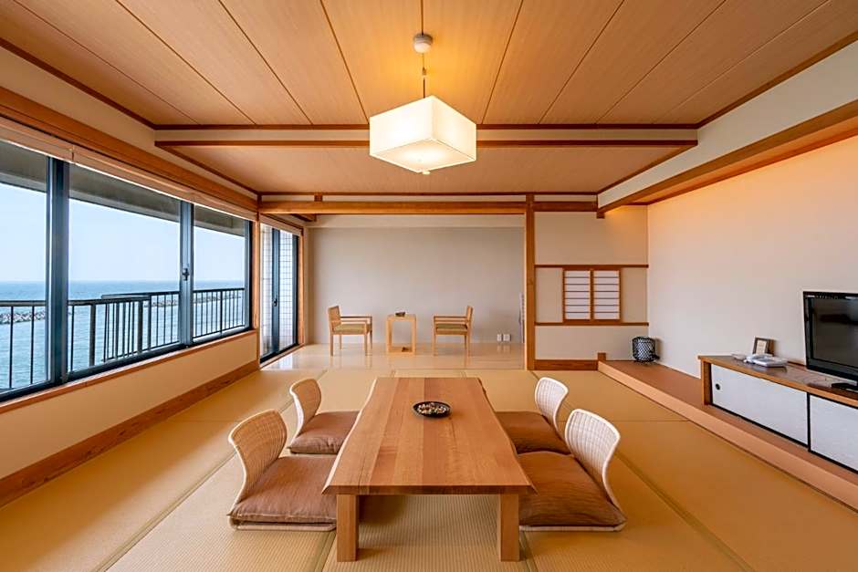 The air-conditioned quadruple room offers a flat-screen TV, tatami, a wardrobe, a safe deposit box as well as sea views. The unit offers 4 futons.