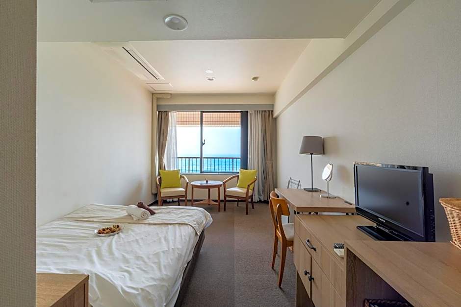 The air-conditioned quadruple room offers a flat-screen TV, tatami, a wardrobe, a safe deposit box as well as sea views. The unit offers 4 futons.